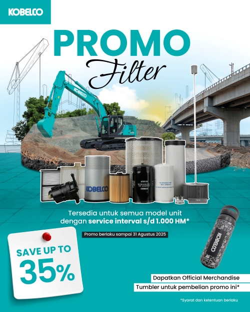 Now there is a Kobelco Filter Promo for all unit models with service intervals of up to 1,000 HM. Enjoy a special discount of up to 35% that can reduce your maintenance costs!
